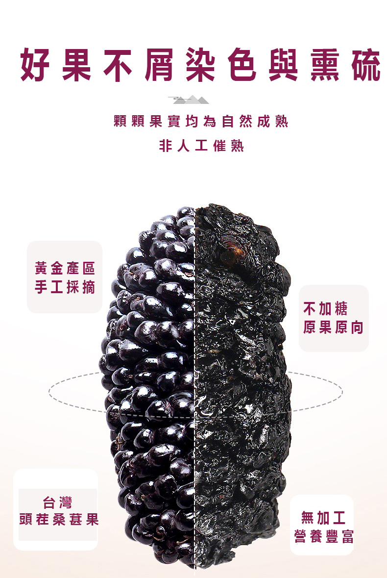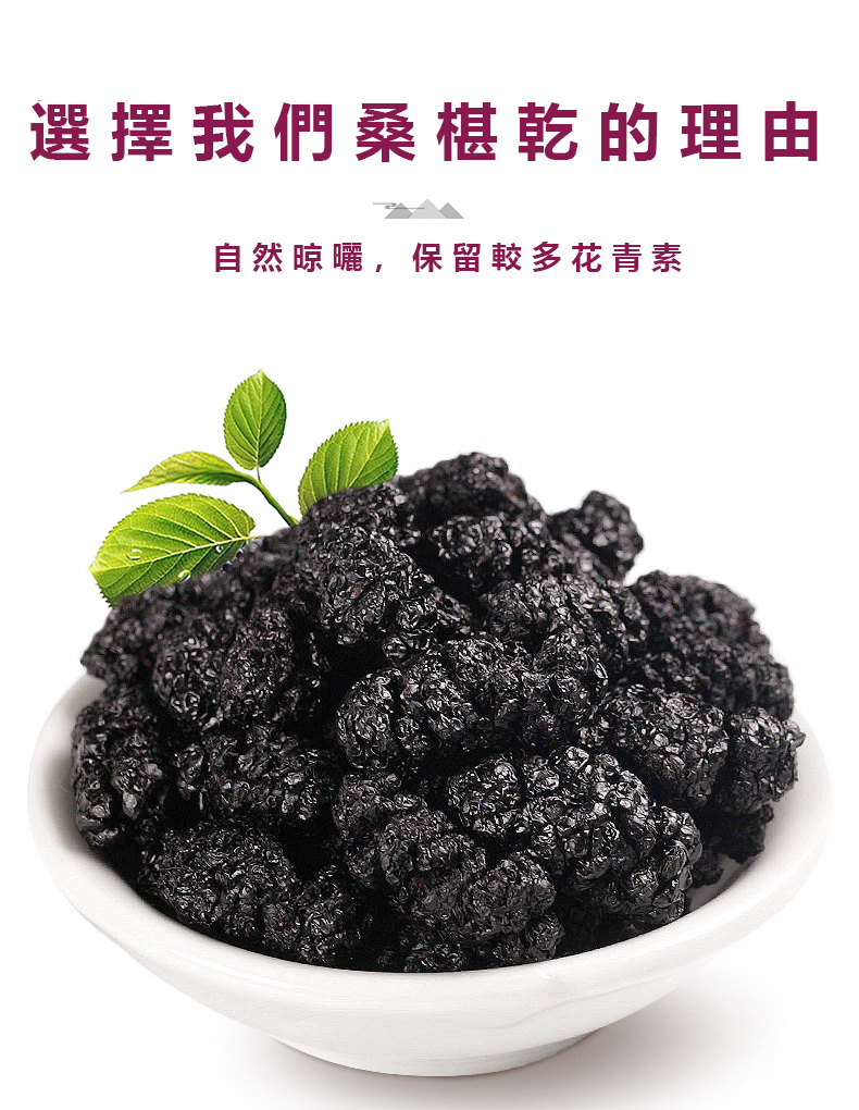 我們的桑椹乾經過層層篩選,全都是採用有機種植