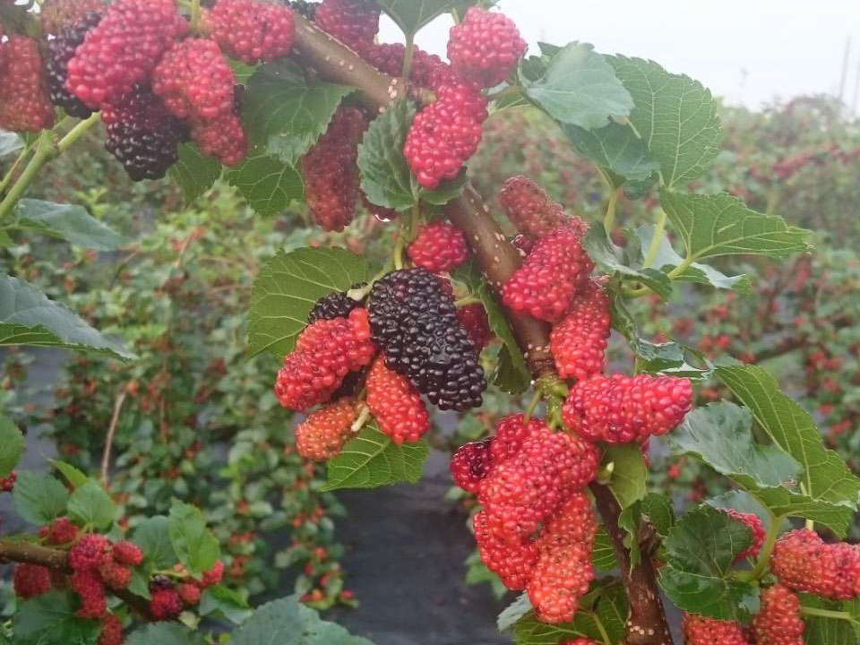 桑樹很茂密、果實也很繽紛,每天上午九點前就要完成採收