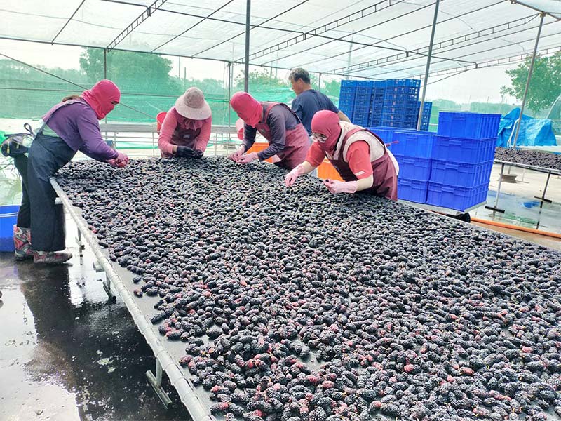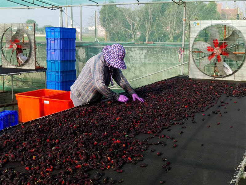 挑選出來的桑葚要經過3-5次清洗,最後在無塵環境下日曬10天左右